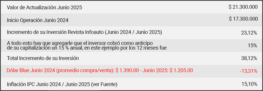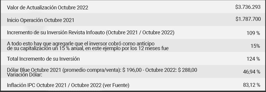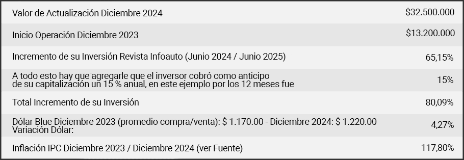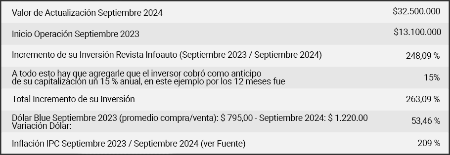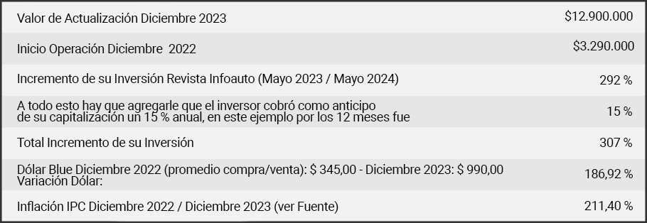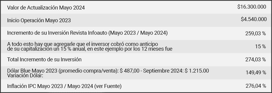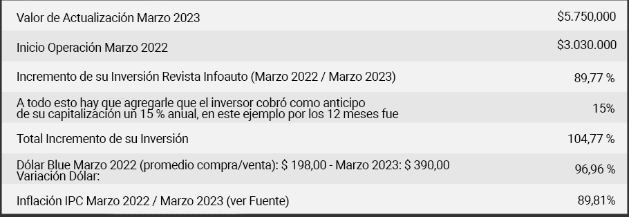 IMPORTANTE: Se puede corroborar que la variación del vehículo, sigue la curva del dólar y de la inflación ajustándose al compás de la apreciación en el tipo de cambio y la inflación.